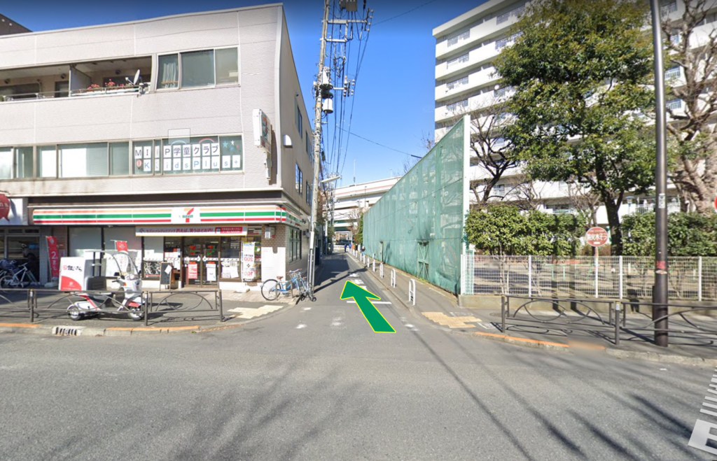 ⑥左手にセブンイレブンがあります。セブンイレブンの横を直進します。