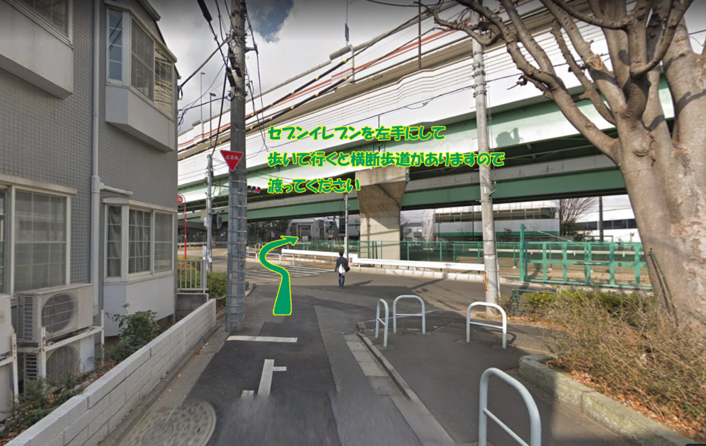 ⑦直進した先に横断歩道がありますので、渡って下さい。