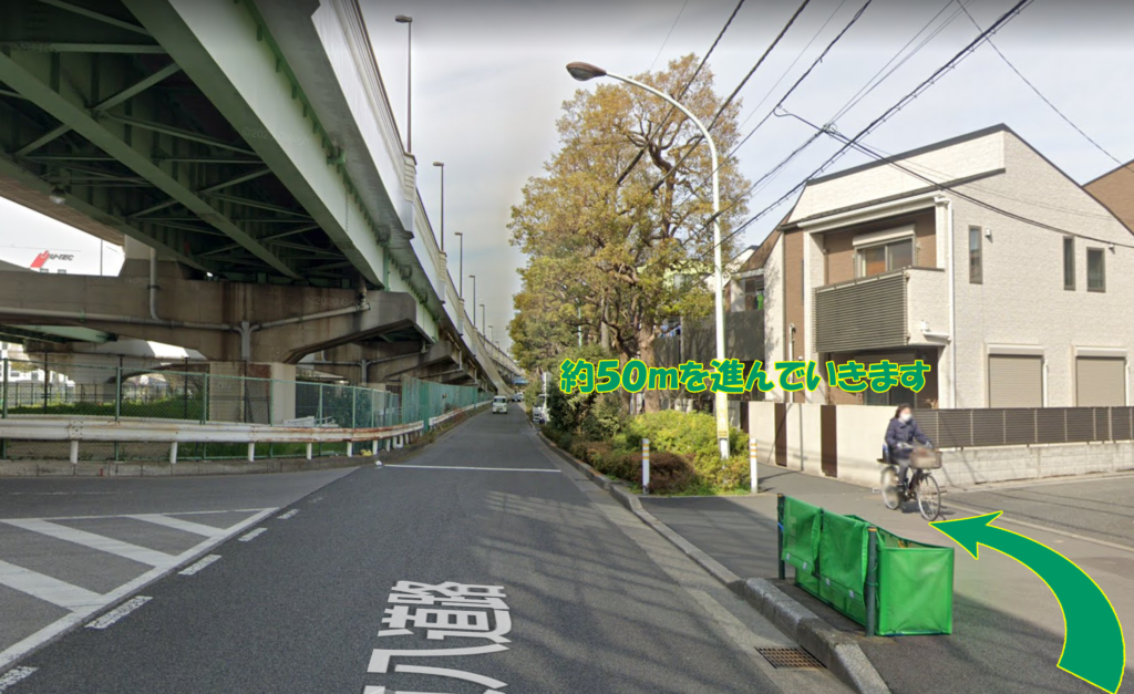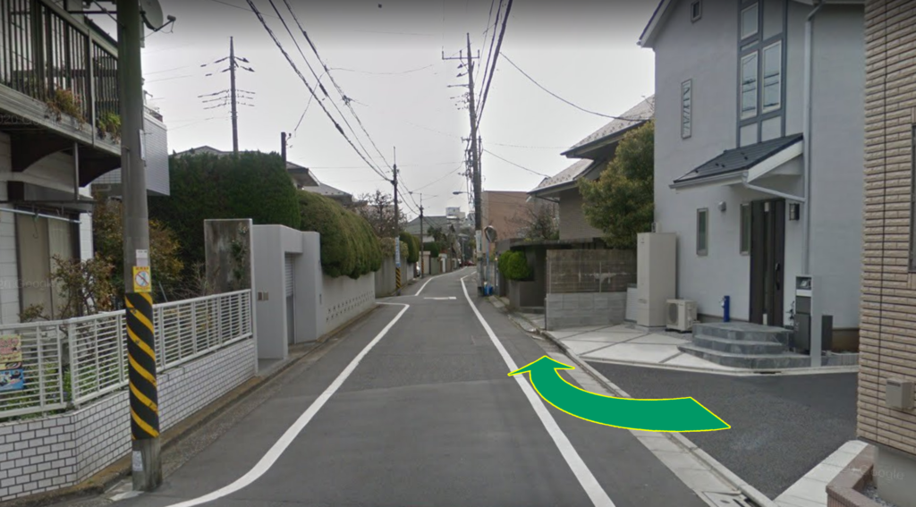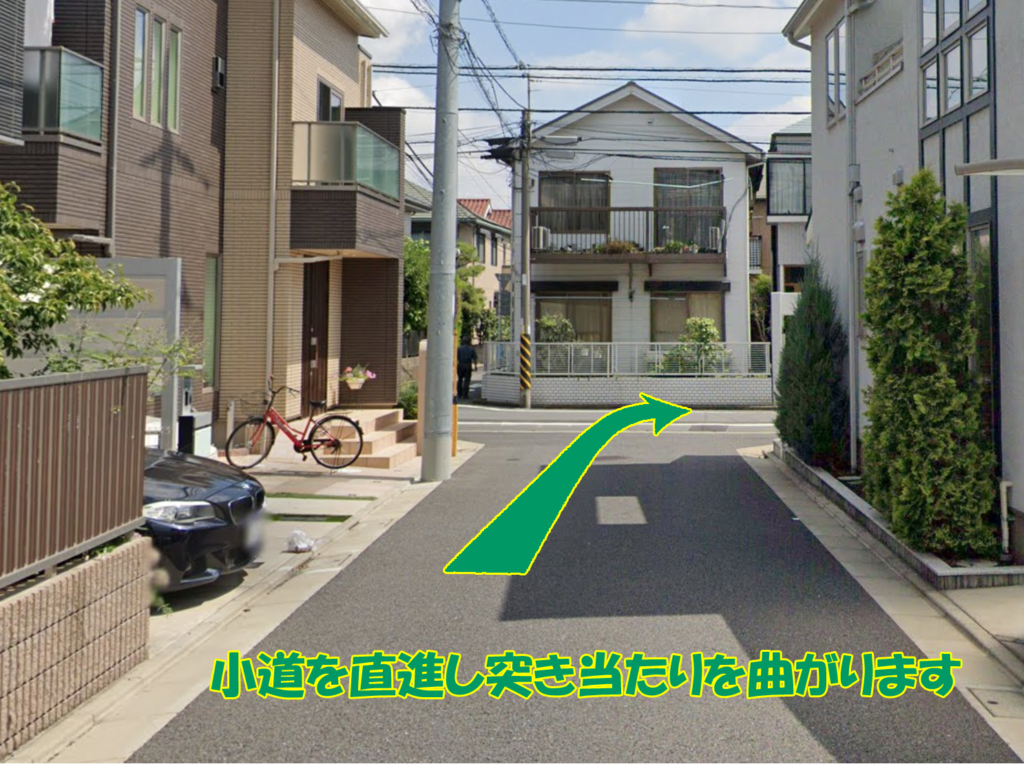 ⑤曲がったら、最初の横断歩道まで進みます。横断歩道を渡ってください。
