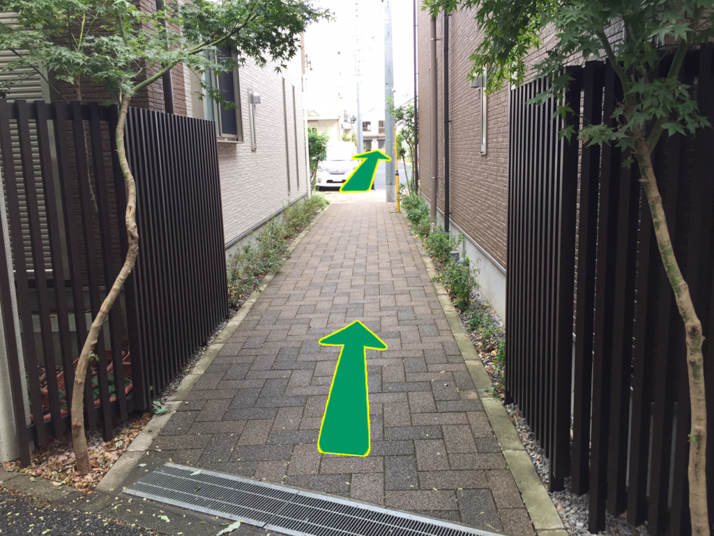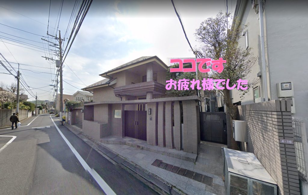 ⑮クリニックに到着です。左側の黒い門のある家が当院です。